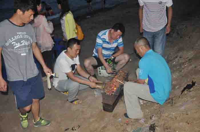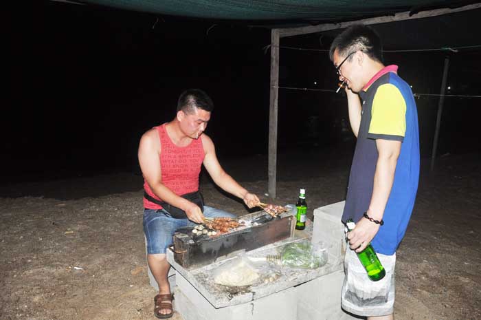 燒烤開始了 “大廚”為我們服務(wù)